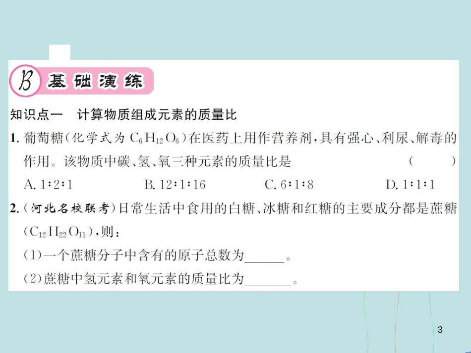 (遵义专版)九年级化学全册 第3章 物质构成的奥秘 3.3 物质的组成 第3课时 纯净物中元素之间的质量分数课件 沪教版_第3页