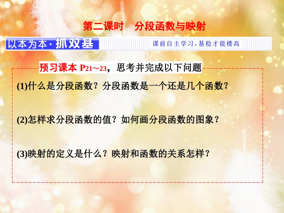 (浙江专版)高中数学 第一章 集合与函数概念 1.2 函数及其表示 1.2.2 第二课时 分段函数与映射课件 新人教A版必修1_第1页