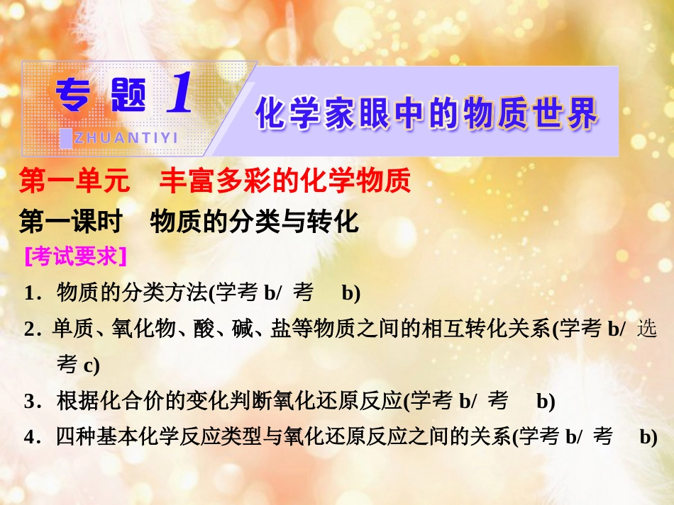 (浙江专版)高中化学 专题1 化学家眼中的物质世界 第一单元 第一课时 物质的分类与转化课件 苏教版必修1_第1页