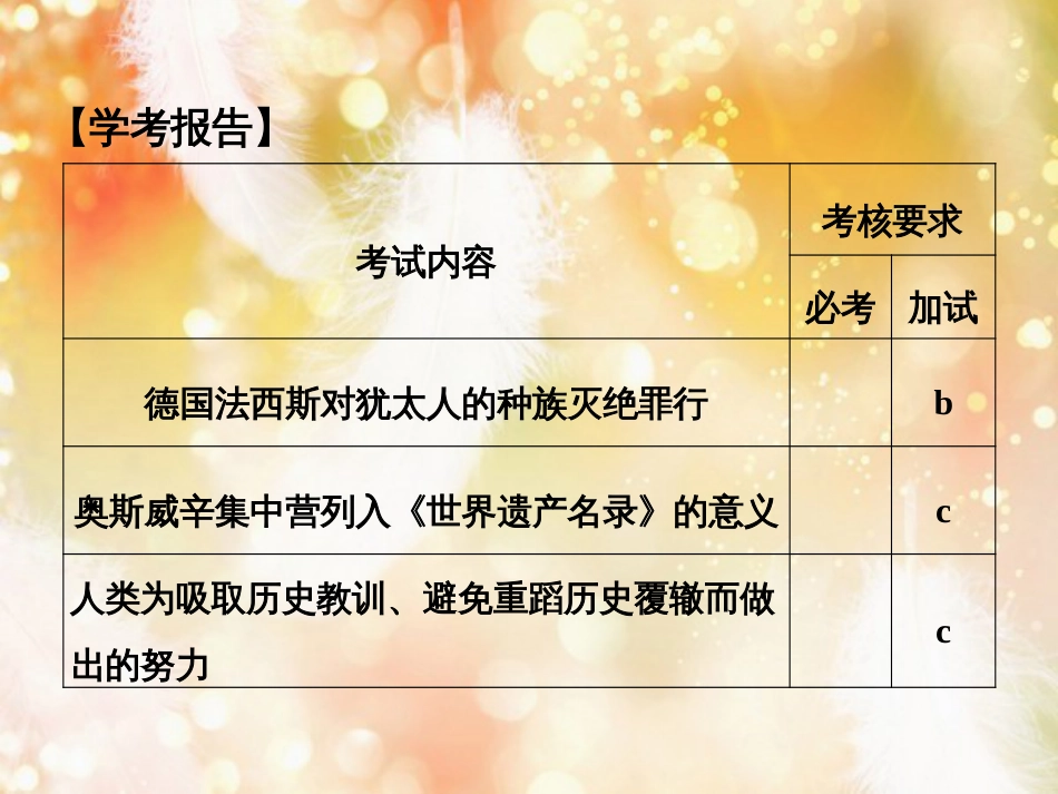 第2课时德国法西斯的杀人工厂——奥斯威辛集中营【学考报告】考试内容考核要求必考加试德国法西斯对犹太人的种族灭绝罪行b奥斯威辛集中营列...