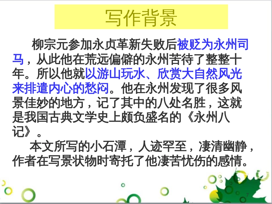 小石潭记柳宗元3文学常识填空《小石潭记》的作者是______,字____,____人,___代著名____家,世称______。他与唐代的_____和宋代的______、___...