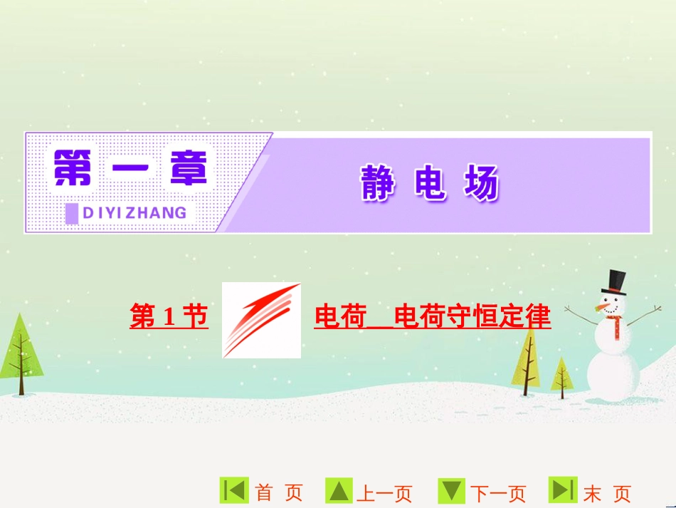 首页末页下一页上一页第1节电荷__电荷守恒定律首页末页下一页上一页1.自然界中有两种电荷,富兰克林把它们命名为正、负电荷:同种电荷相互...