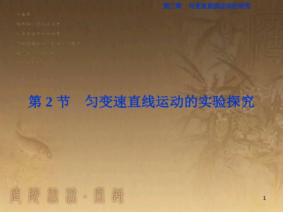 第2节匀变速直线运动的实验探究第三章匀变速直线运动的研究1一、实验目的1.练习使用打点计时器.2.掌握判断物体是否做匀变速直线运动的方...