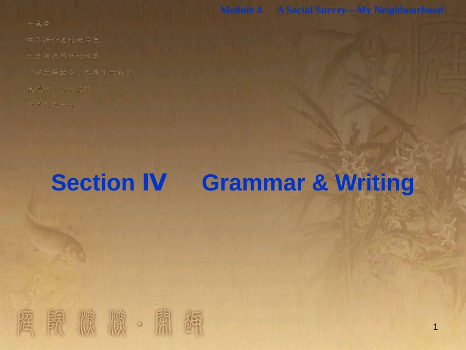 SectionⅣGrammar&WritingModule4ASocialSurvey—MyNeighbourhood1现在完成时一、现在完成时的构成基本形式:have/has+动词的过去分词否定...