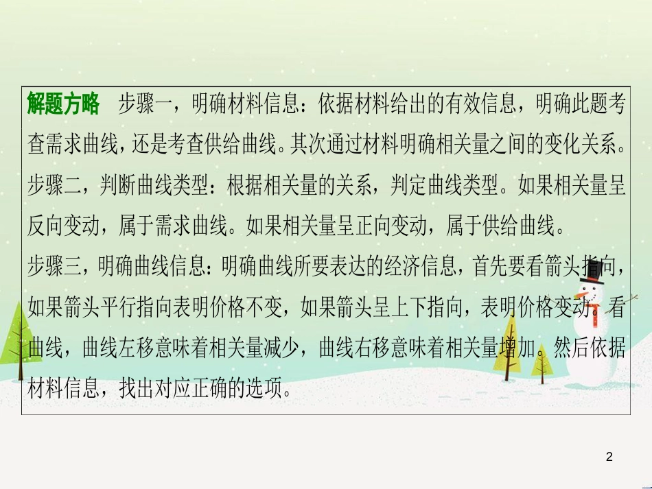 目录CONTENTS微专题提升系列专题1经济生活中的函数曲线1解题方略步骤一,明确材料信息:依据材料给出的有效信息,明确此题考查需求曲线,还...