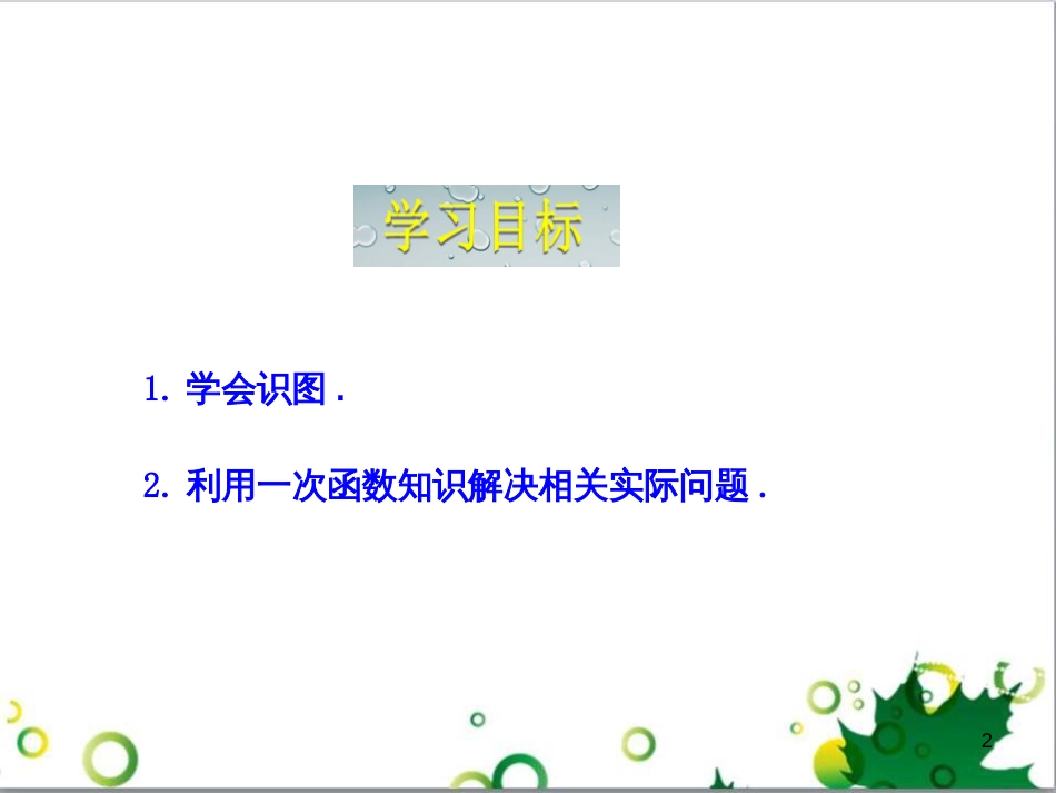 第3课时借助两个一次函数图象解决有关问题11.学会识图.2.利用一次函数知识解决相关实际问题.2我们前面学习了有关一次函数的一些知识及如何...