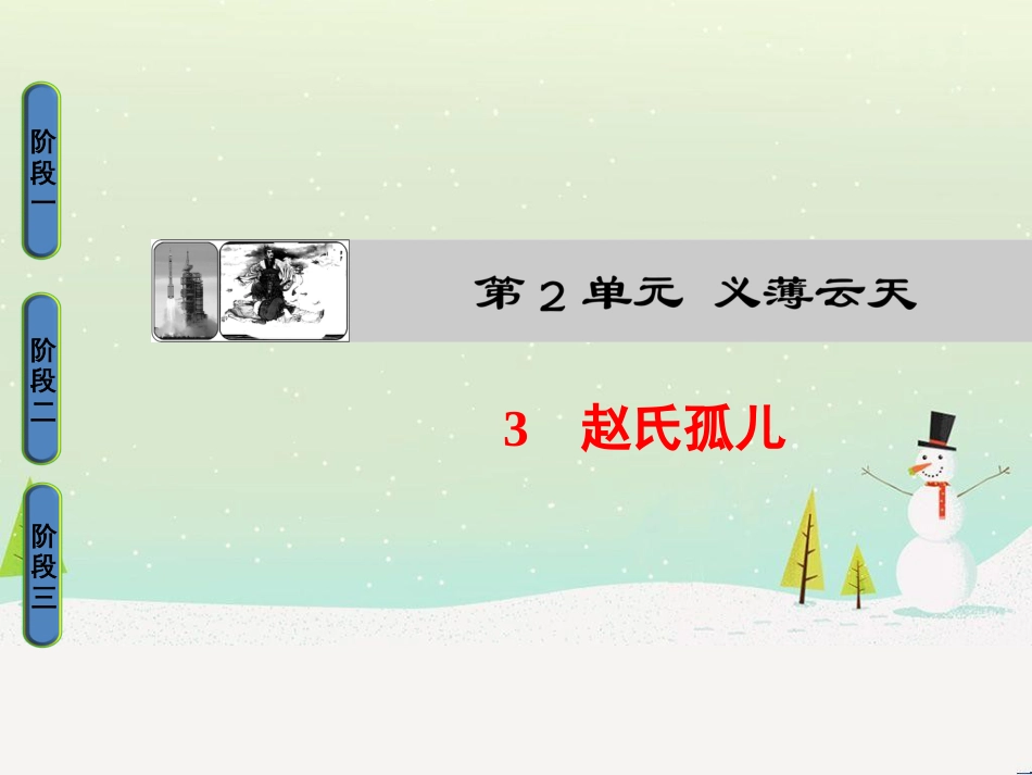 阶段一阶段二阶段三3赵氏孤儿程婴之义为救赵氏孤儿,程婴先将自家的婴儿(本文中为“他人婴儿”,婴亲子”)交给公孙杵臼,然后去告发公孙杵...