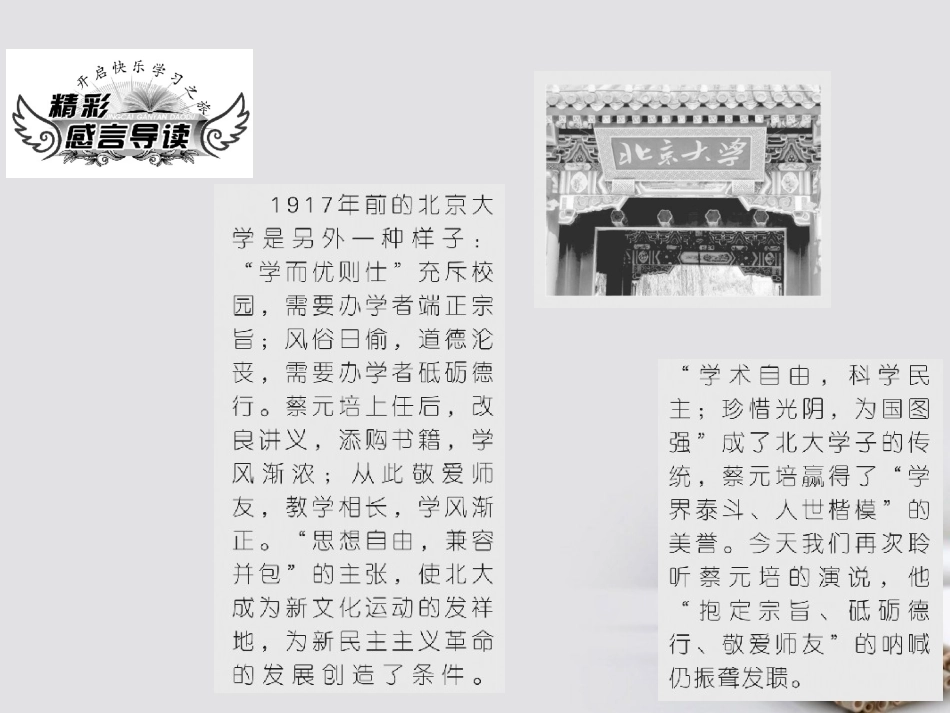 全优设计秋高中语文 第四单元 第11课 就任北京大学校长之演说课件 新人教版必修_第2页