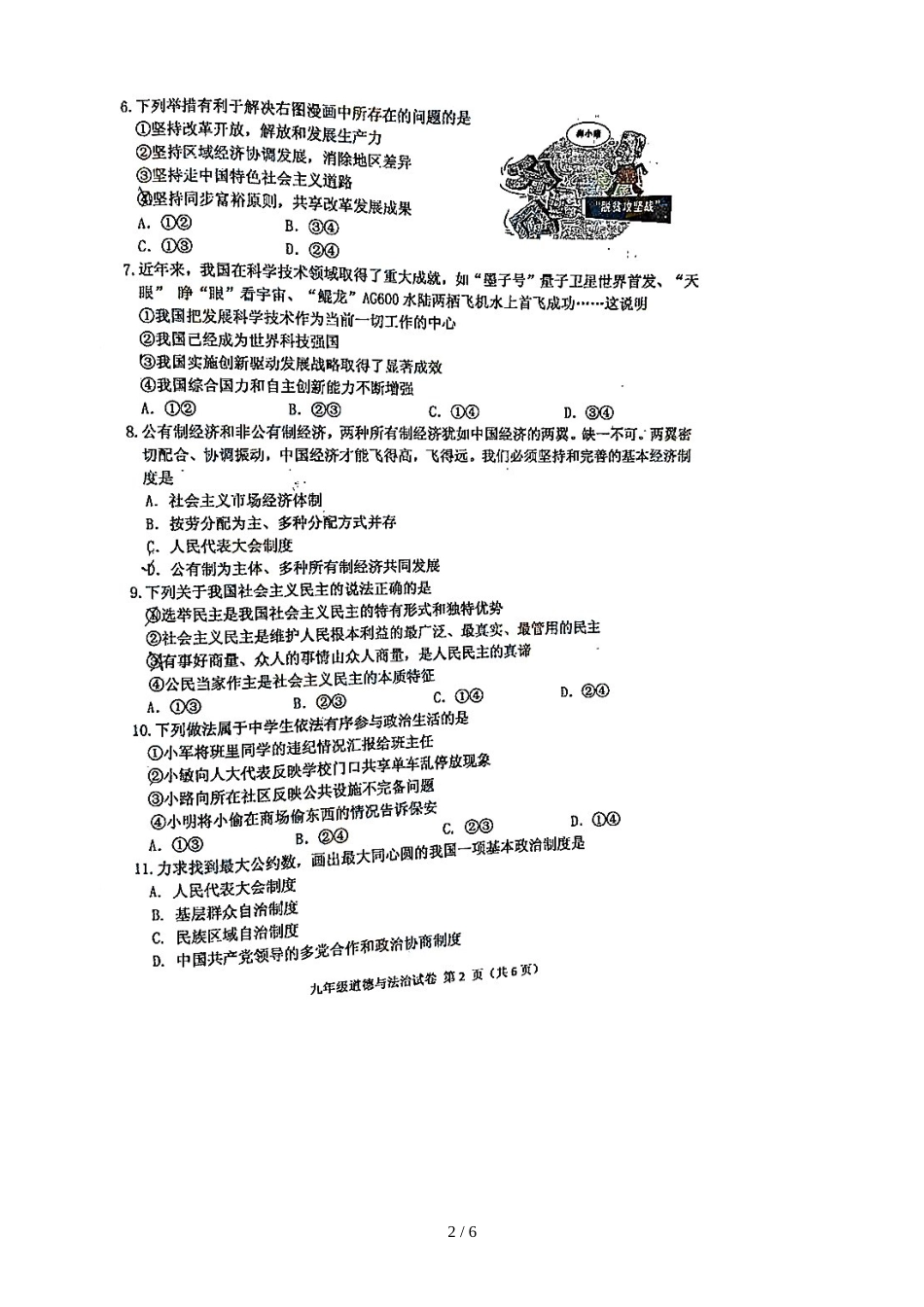 福建省福州市台江区九年级道德与法治期中试题(图片版,)_第2页