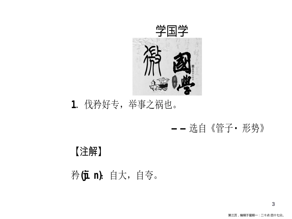 1第一页,编辑于星期一:二十点四十七分。12我有一个梦想2第二页,编辑于星期一:二十点四十七分。学国学1.伐矜好专,举事之祸也。——选...