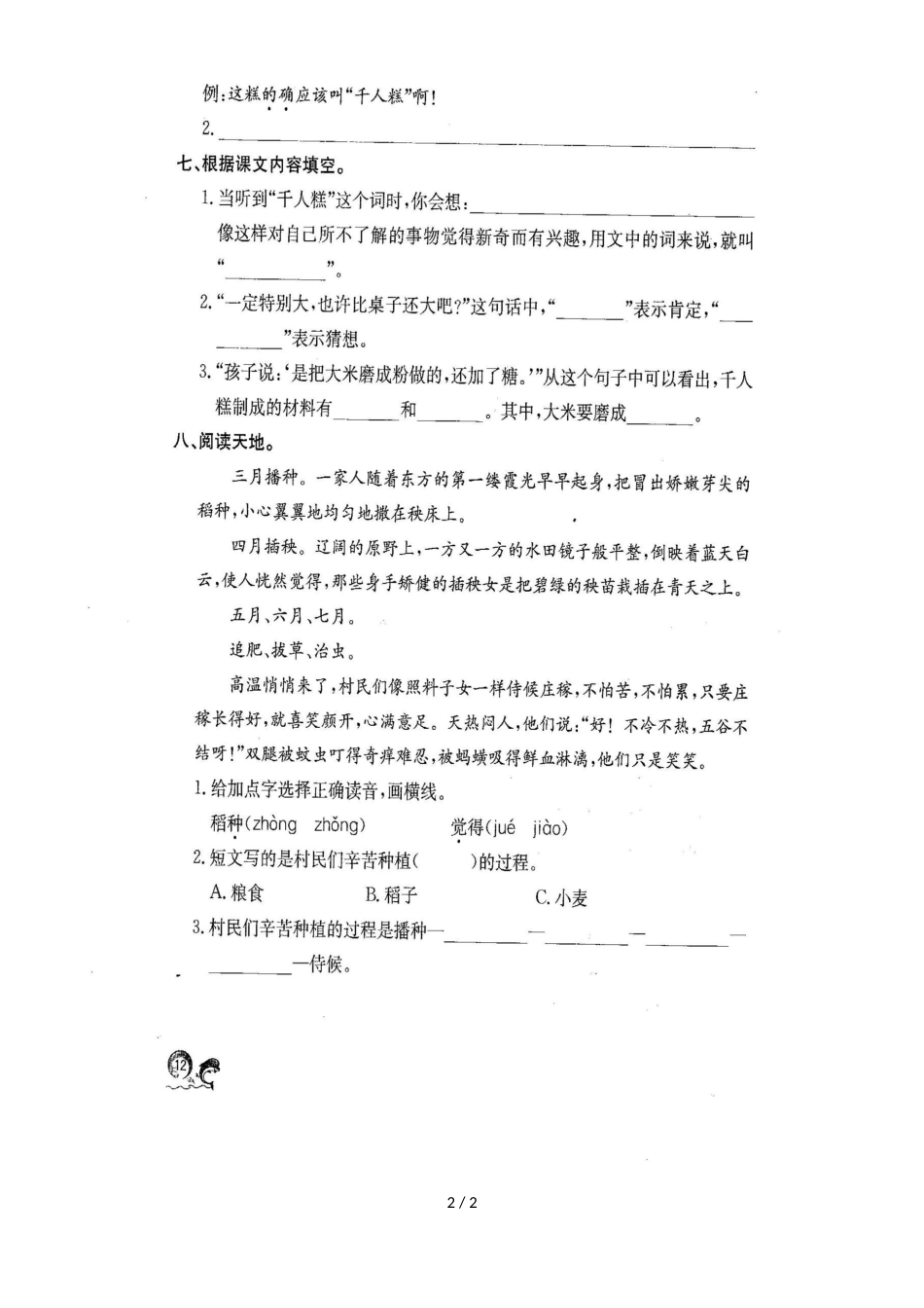 二年级下册语文一课一练6千人糕  人教部编版_第2页