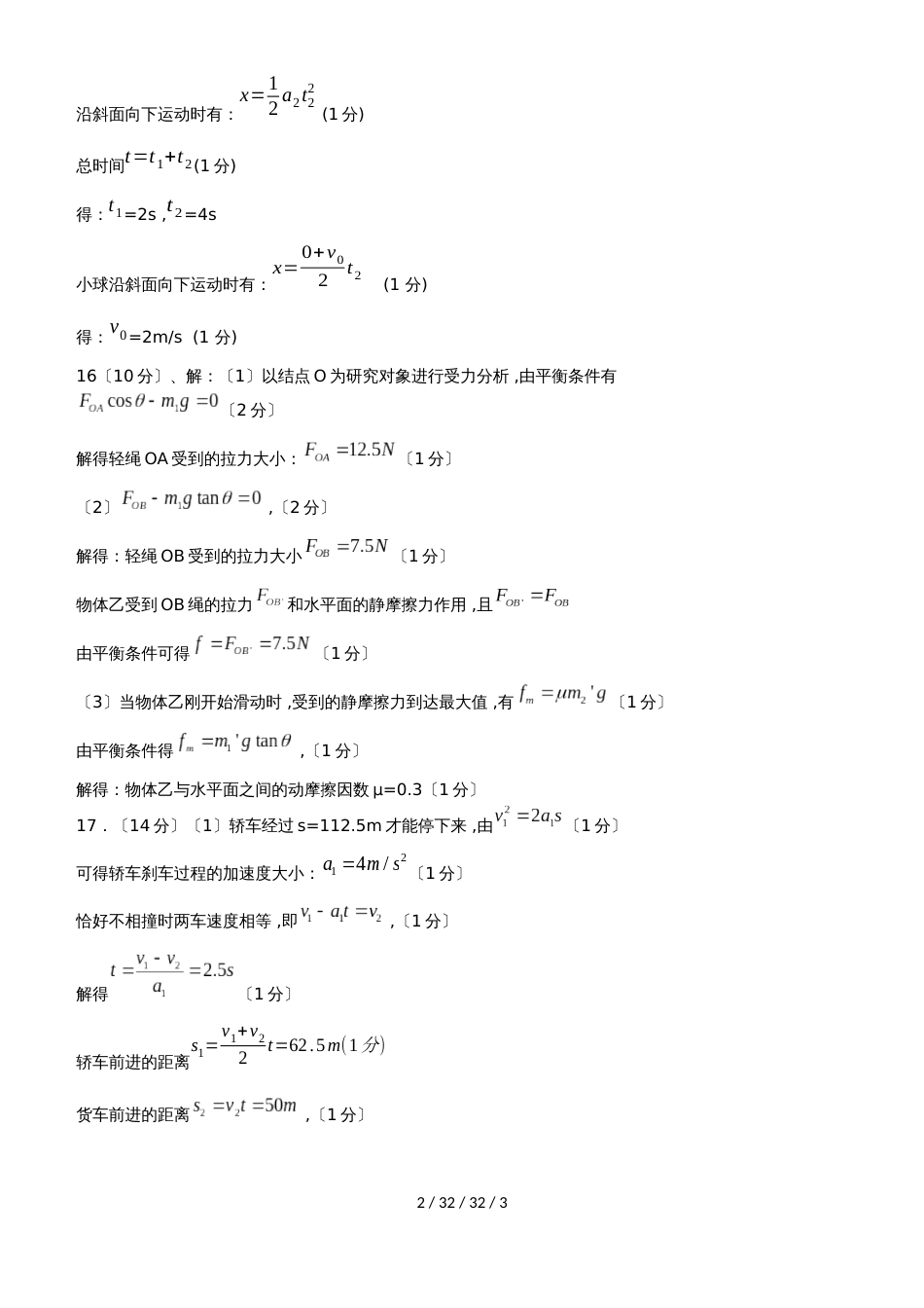 湛江一中2019-2019学年度第一学期“第二次大考〞高一级物理科答案一、单项选择题(此题共40分〕12345678DDDBBBCC二、多项选择题(此题共20分...
