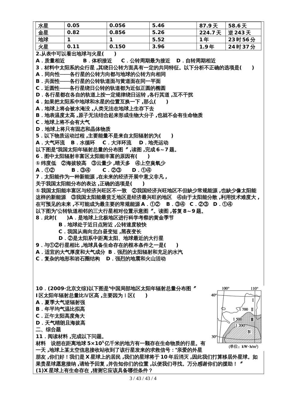 高中地理高三地理一轮复习 复习导学案3  地球的宇宙环境_第3页