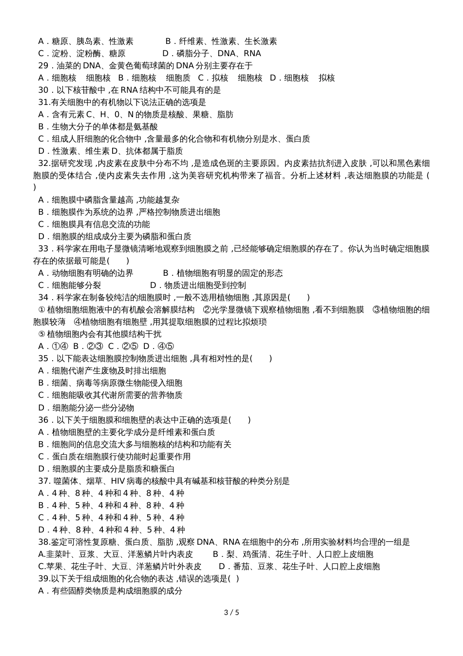 黑龙江省青冈县一中高一生物上学期期中试题_第3页
