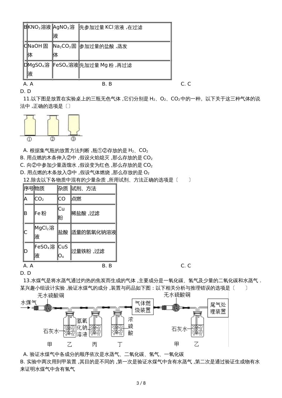 九年级化学:“常见气体的检验”竞赛辅导练习题(无答案)_第3页