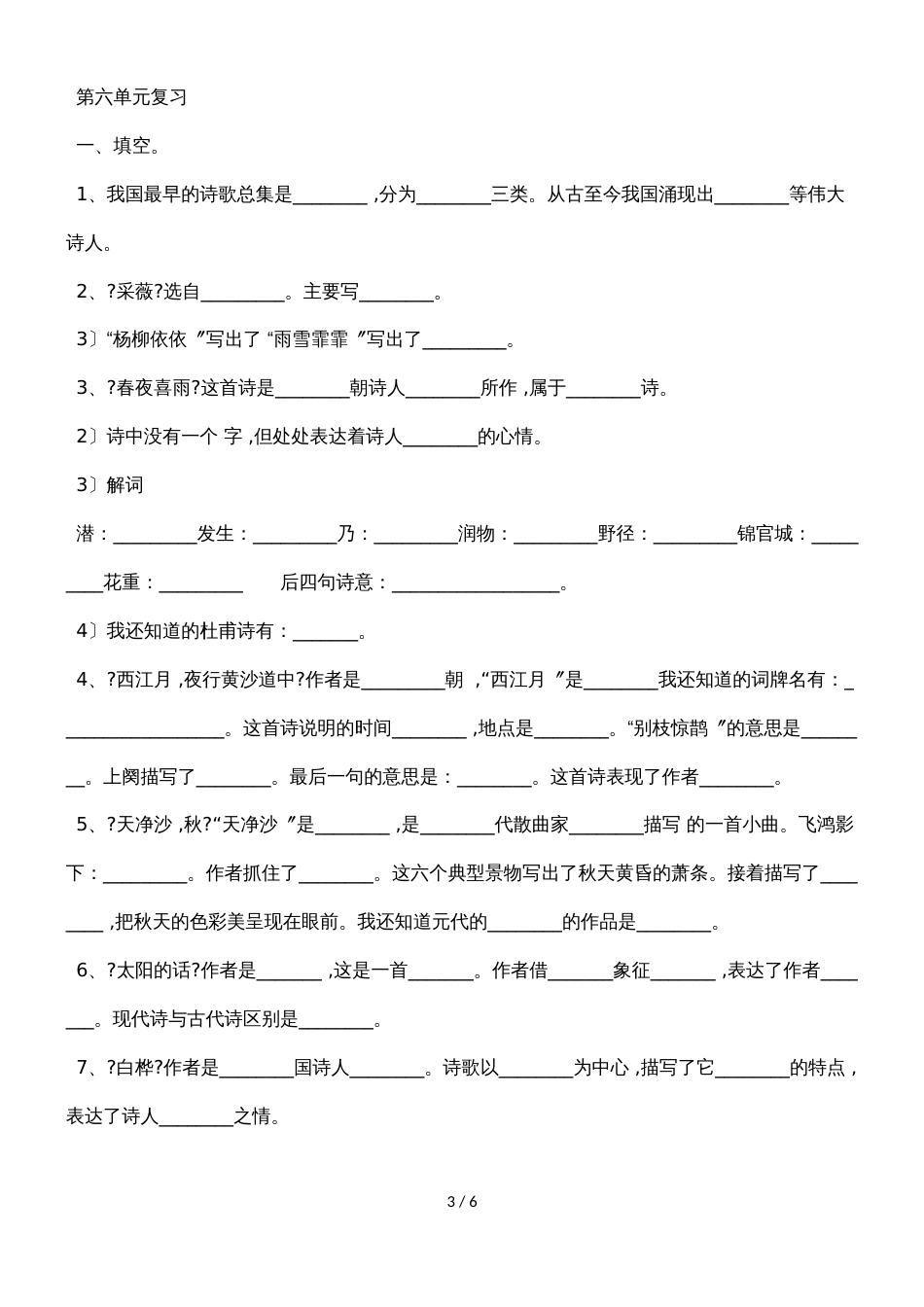 六年级上语文试题57单元重点练习题_人教版新课标(无答案)_第3页