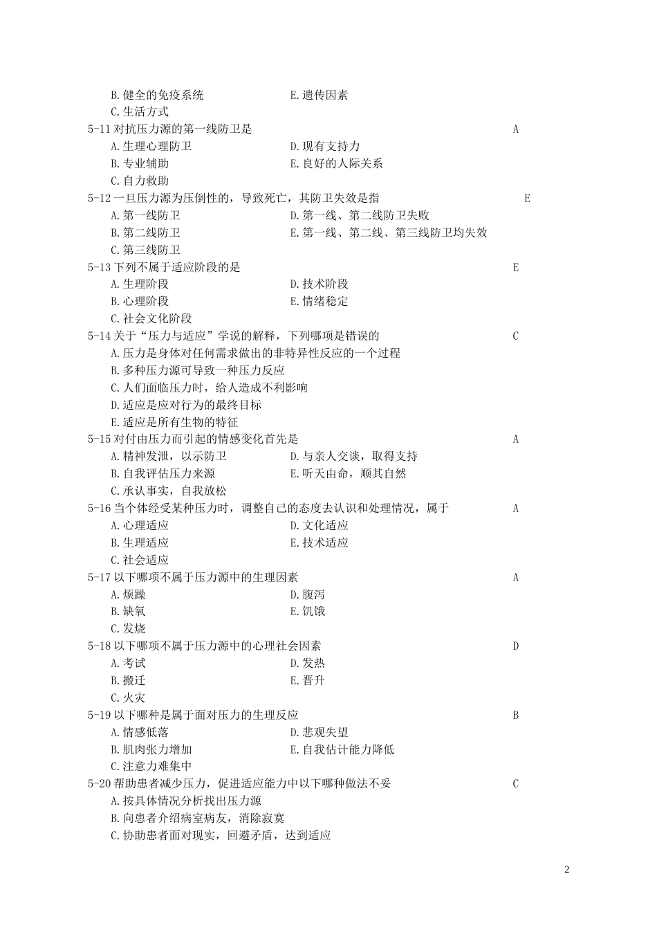 第五章护理的基本理论选择题(5-1~5-80)A1型单项选择题(5-1~5-30)5-1为因化疗后脱发的患者佩带假发,是为了满足患者的DA.基本生活需要...