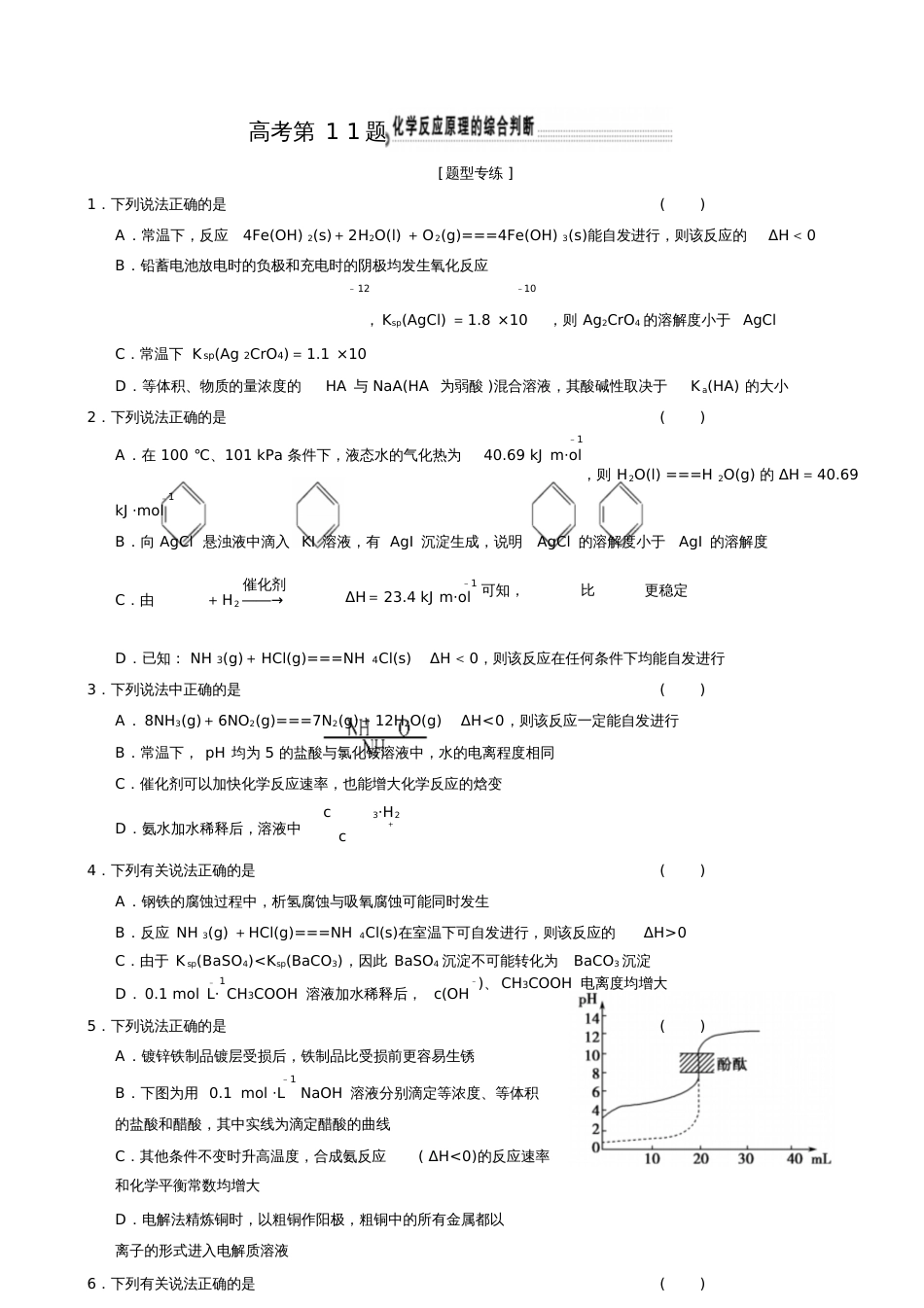 高考第11题[题型专练]1.下列说法正确的是()A.常温下,反应4Fe(OH)2(s)+2H2O(l)+O2(g)===4Fe(OH)3(s)能自发进行,则该反应的ΔH<0B.铅...