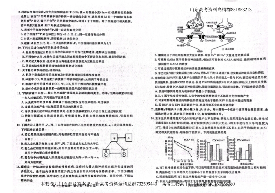 山东高考资料高精群851853213本套卷九门原卷及答案见:新高考资料全科总群732599440;高考生物高中生物资料群1160558780山东高考资料高精群...