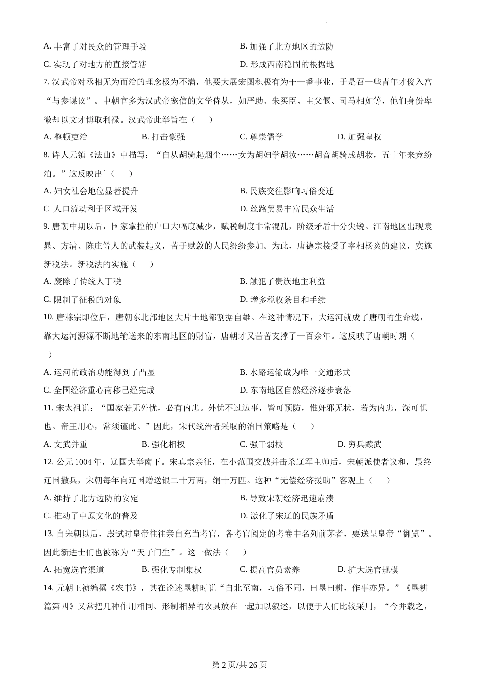 2022-2023学年南京市高一上历史期末学情调研试卷(含答案)_第2页
