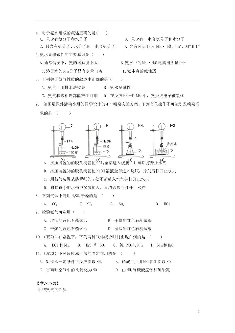 高中化学第四章非金属及其化合物氨硝酸硫酸时学案新人教版必修_第3页