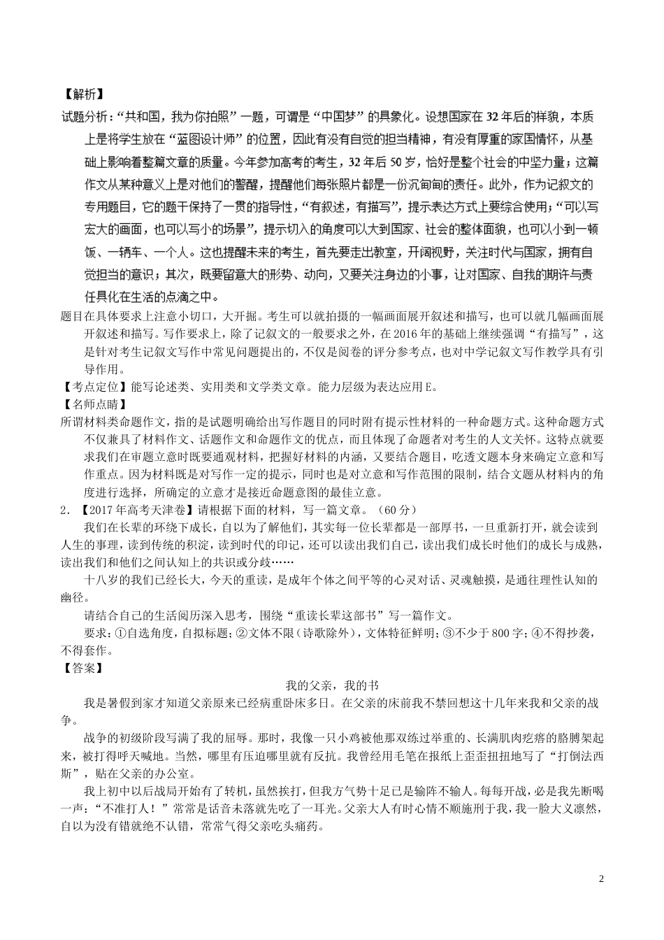 高考语文二轮复习专题写作之记叙文讲_第2页