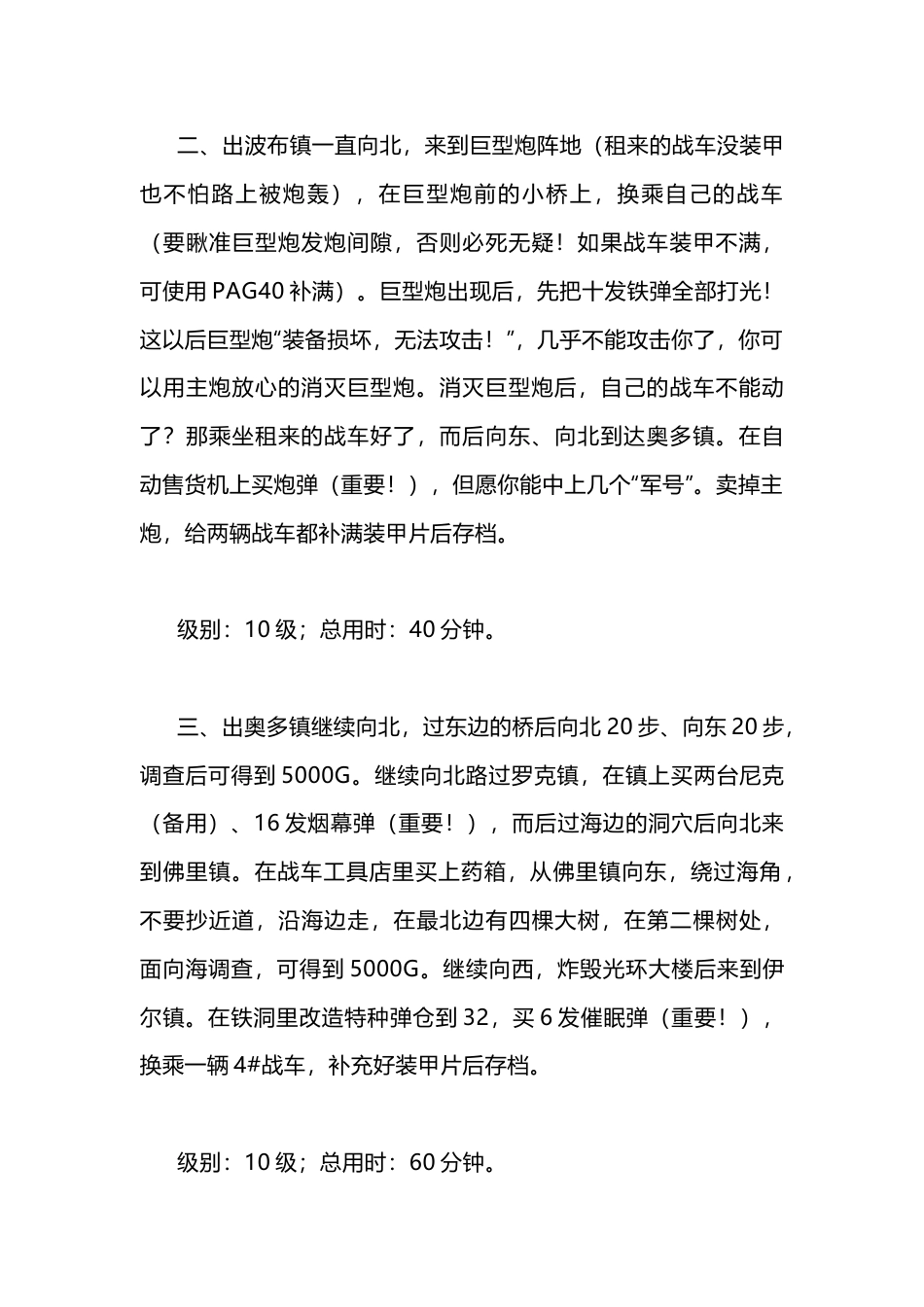《重装机兵》之《急速攻略》原则:1、除必须消灭的怪物外(巨型炮两个、瓦鲁、瓦鲁部下三个、防御机器、机器人两个、诺亚两个共十一个怪物...
