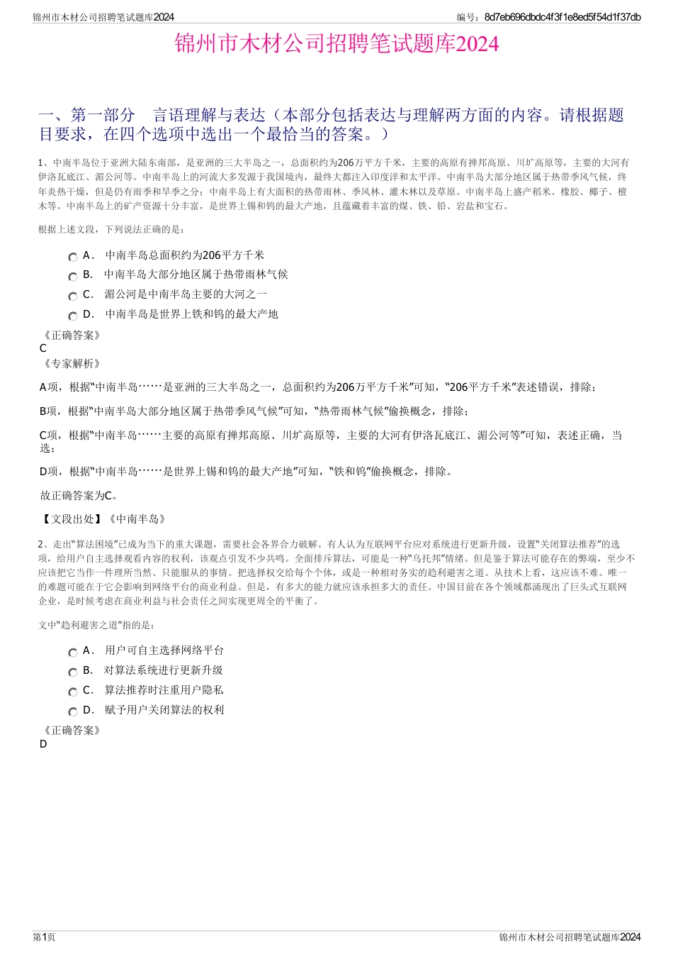 锦州市木材公司招聘笔试题库2024_第2页