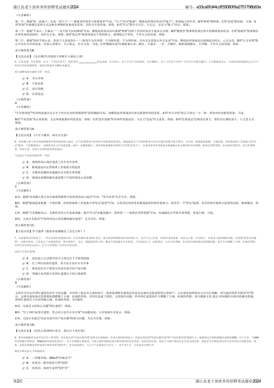 蒲江县老干部休养所招聘笔试题库2024一、第一部分言语理解与表达(本部分包括表达与理解两方面的内容。请根据题目要求,在四个选项中选出一...
