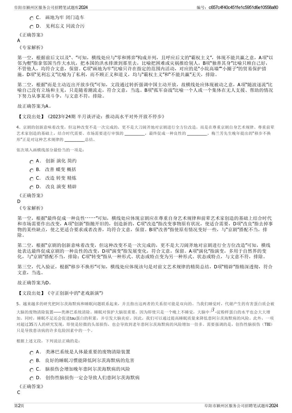 阜阳市颍州区服务公司招聘笔试题库2024一、第一部分言语理解与表达(本部分包括表达与理解两方面的内容。请根据题目要求,在四个选项中选出...