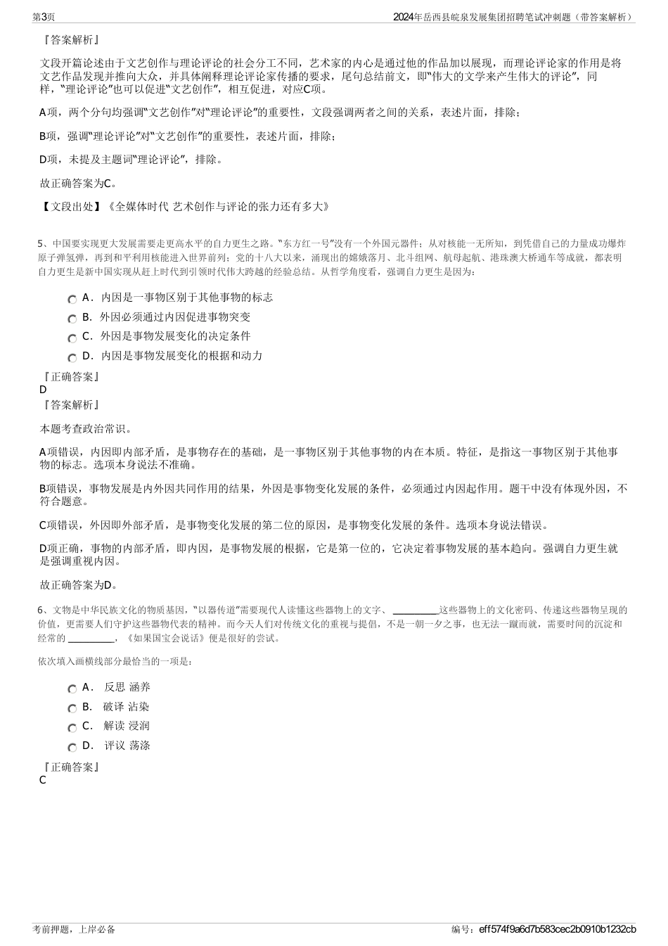 2024年岳西县皖泉发展集团招聘笔试冲刺题(带答案解析)【下载须知】:1,本套练习包含以下题型:言语理解与表达题、常识判断题、数量关系...