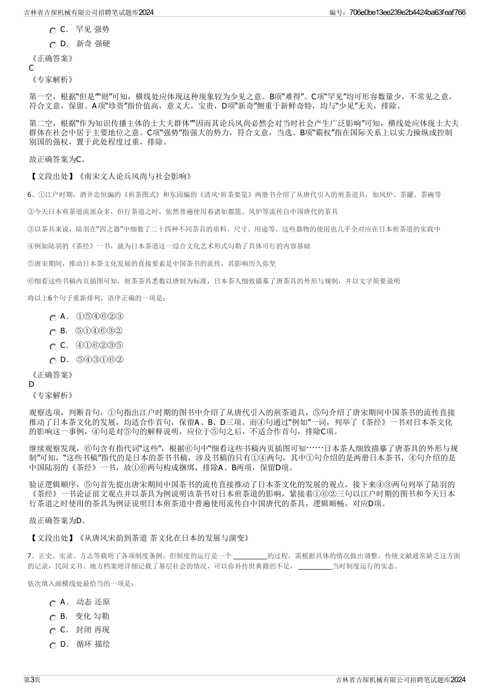 吉林省吉探机械有限公司招聘笔试题库2024一、第一部分言语理解与表达(本部分包括表达与理解两方面的内容。请根据题目要求,在四个选项中选...