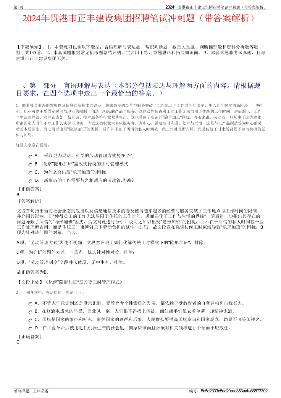 2024年贵港市正丰建设集团招聘笔试冲刺题(带答案解析)【下载须知】:1,本套练习包含以下题型:言语理解与表达题、常识判断题、数量关系...