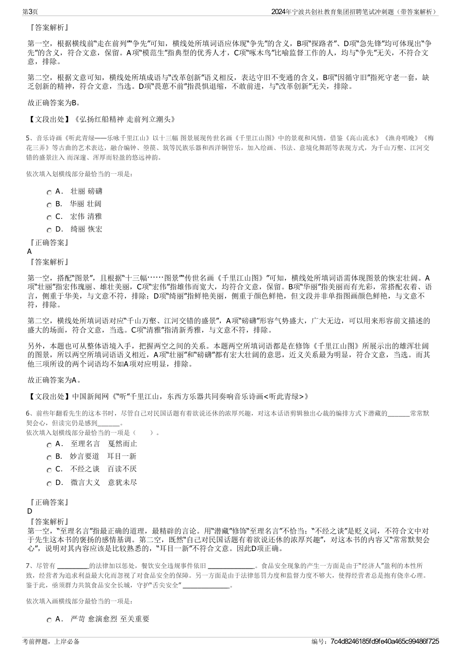 2024年宁波共创社教育集团招聘笔试冲刺题(带答案解析)【下载须知】:1,本套练习包含以下题型:言语理解与表达题、常识判断题、数量关系...
