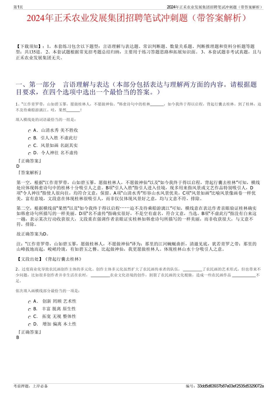 2024年正禾农业发展集团招聘笔试冲刺题(带答案解析)【下载须知】:1,本套练习包含以下题型:言语理解与表达题、常识判断题、数量关系题...