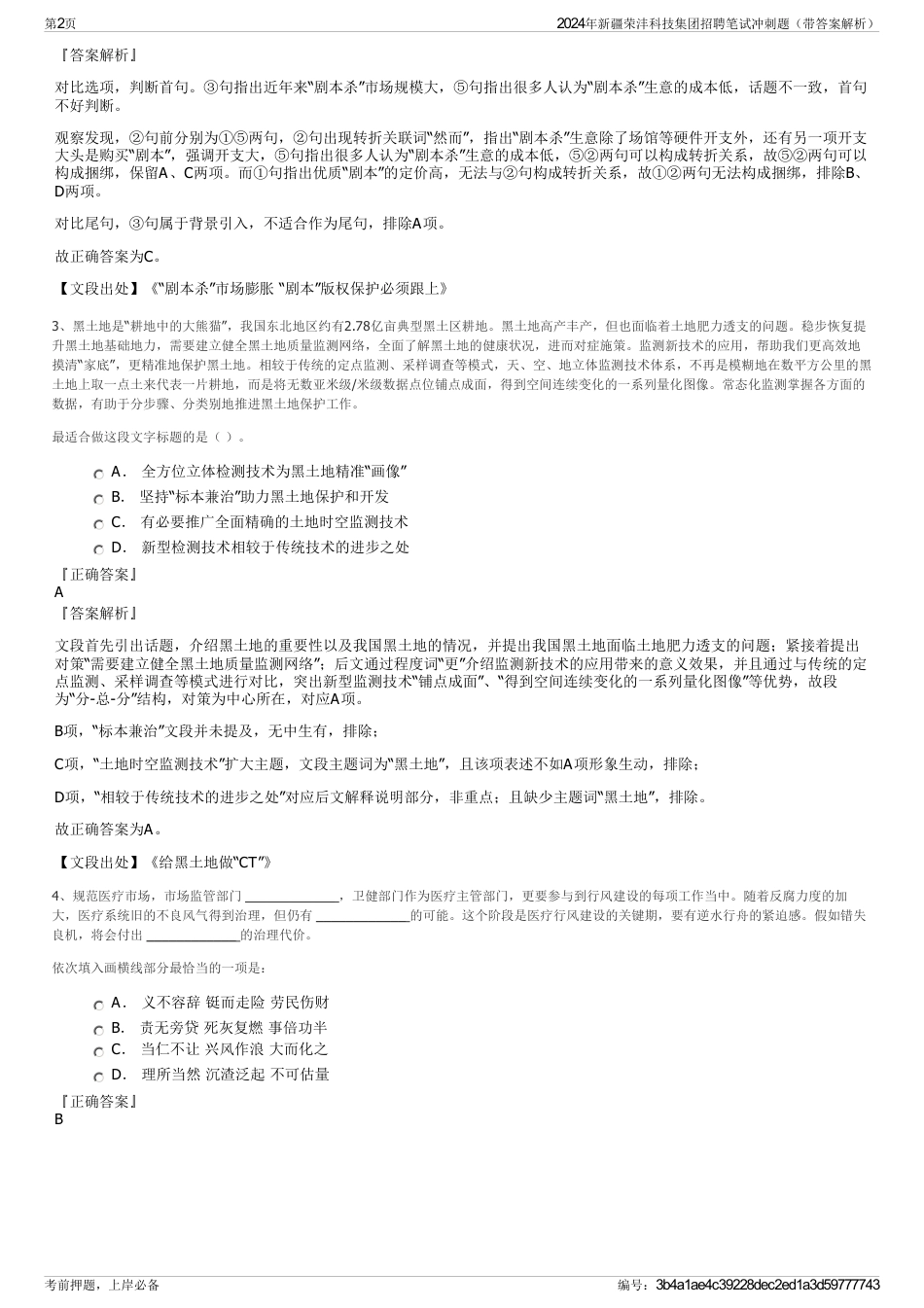 2024年新疆荣沣科技集团招聘笔试冲刺题(带答案解析)【下载须知】:1,本套练习包含以下题型:言语理解与表达题、常识判断题、数量关系题...
