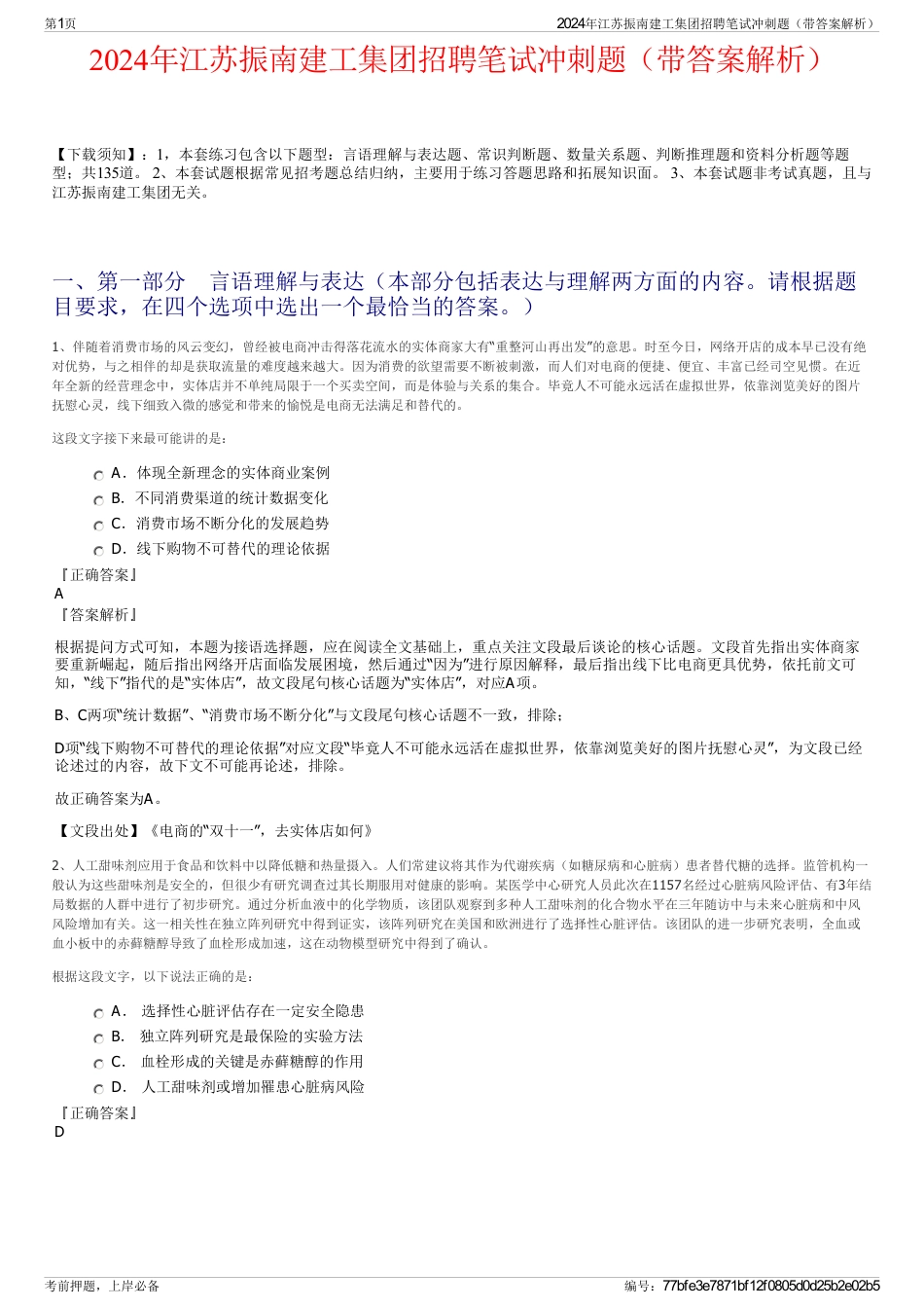 2024年江苏振南建工集团招聘笔试冲刺题(带答案解析)【下载须知】:1,本套练习包含以下题型:言语理解与表达题、常识判断题、数量关系题...