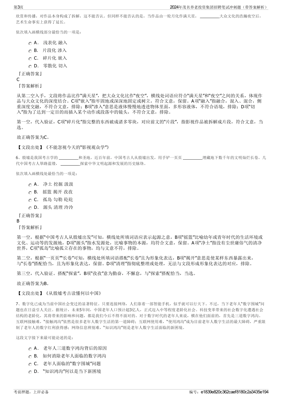 2024年茂名养老投资集团招聘笔试冲刺题(带答案解析)【下载须知】:1,本套练习包含以下题型:言语理解与表达题、常识判断题、数量关系题...