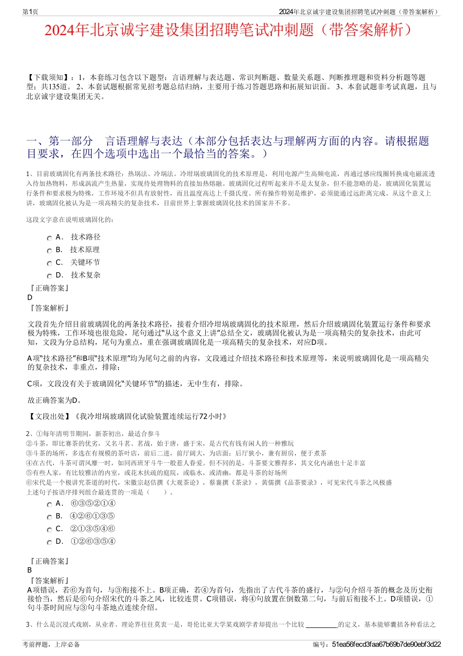 2024年北京诚宇建设集团招聘笔试冲刺题(带答案解析)【下载须知】:1,本套练习包含以下题型:言语理解与表达题、常识判断题、数量关系题...