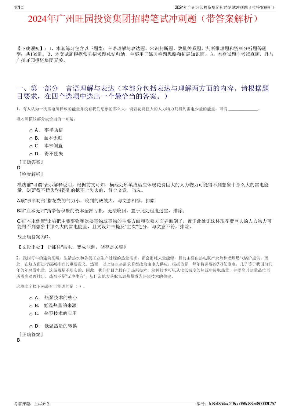 2024年广州旺园投资集团招聘笔试冲刺题(带答案解析)【下载须知】:1,本套练习包含以下题型:言语理解与表达题、常识判断题、数量关系题...