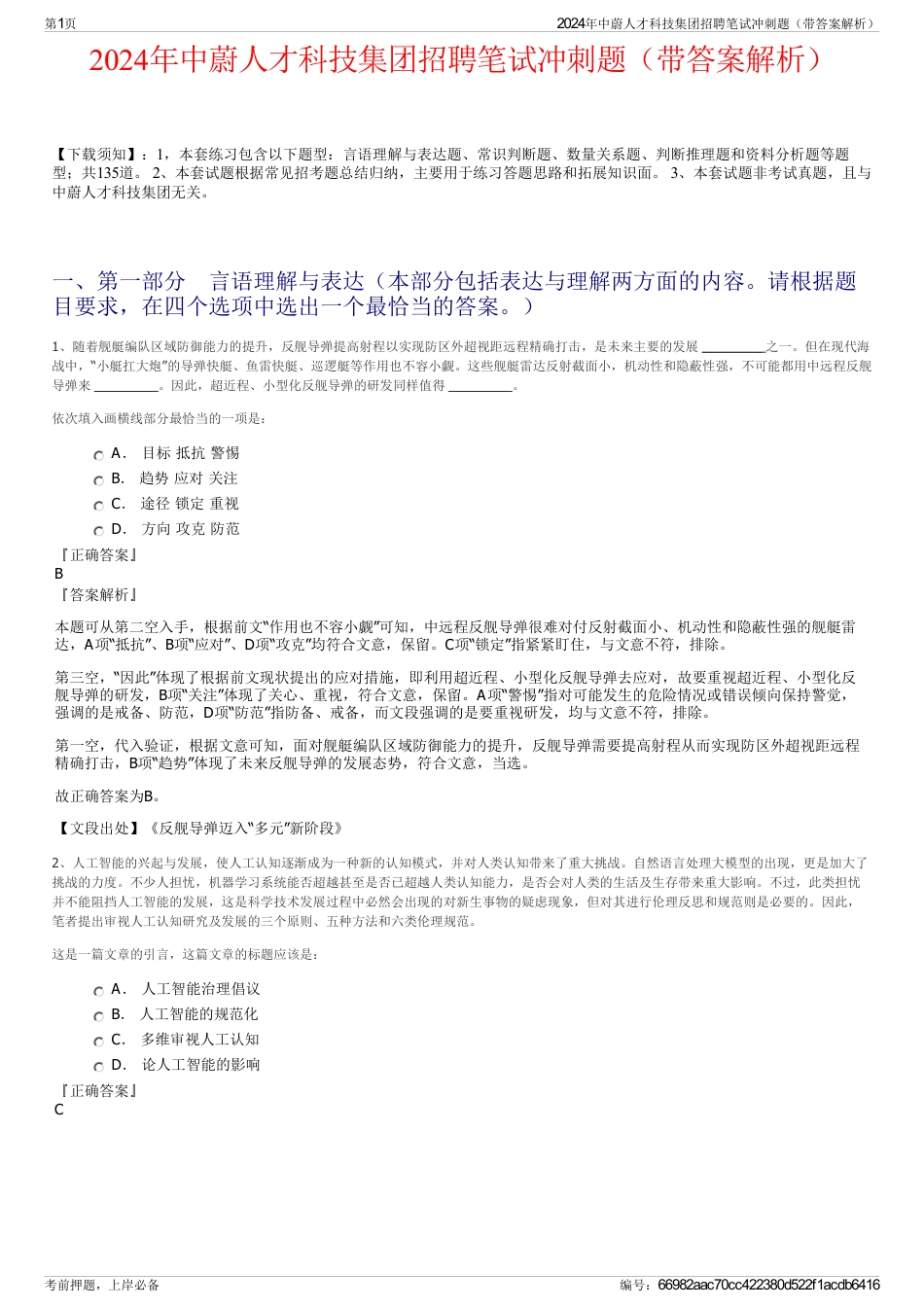 2024年中蔚人才科技集团招聘笔试冲刺题(带答案解析)【下载须知】:1,本套练习包含以下题型:言语理解与表达题、常识判断题、数量关系题...