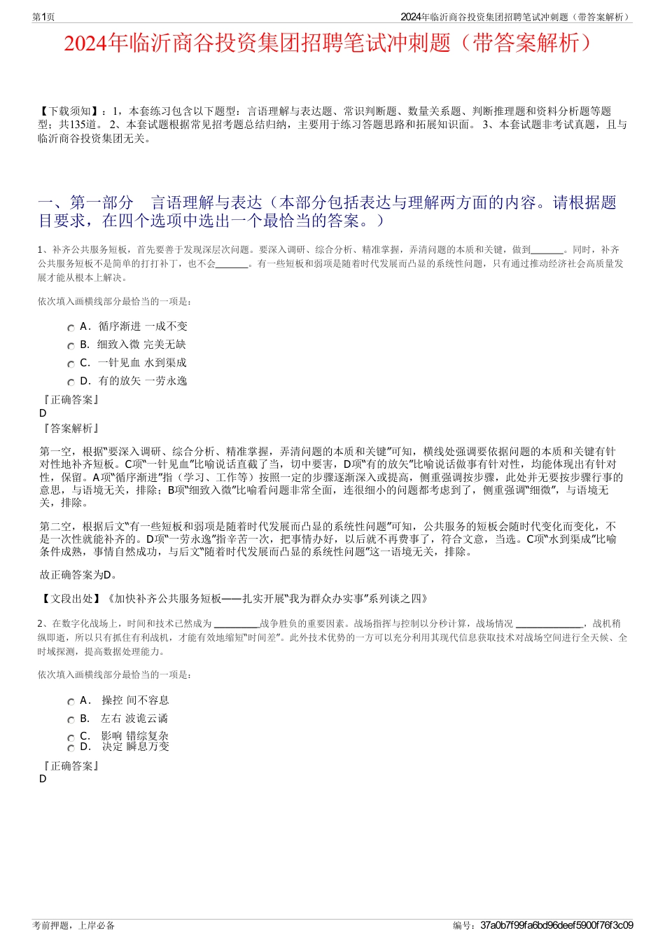2024年临沂商谷投资集团招聘笔试冲刺题(带答案解析)【下载须知】:1,本套练习包含以下题型:言语理解与表达题、常识判断题、数量关系题...