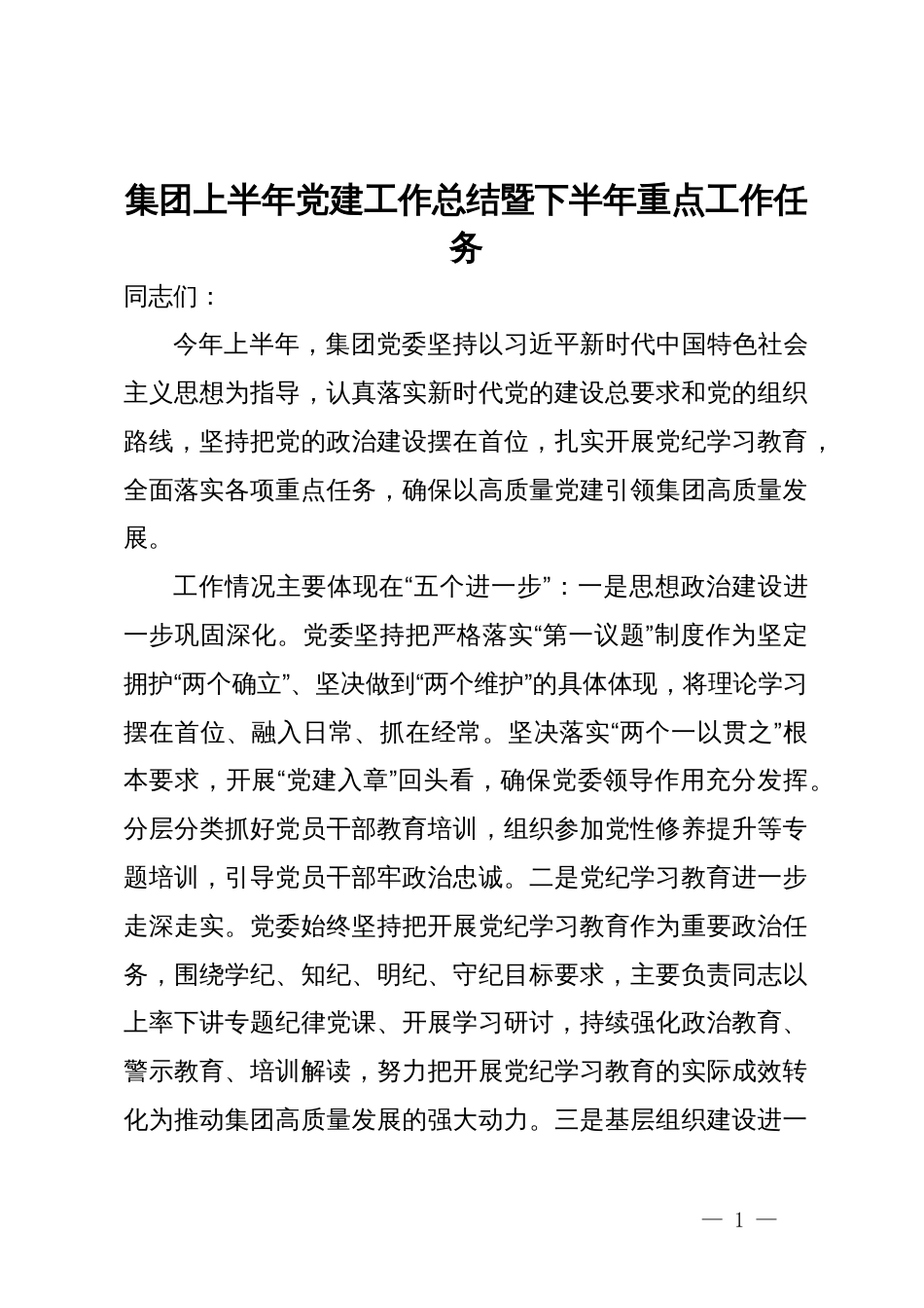 集团上半年党建工作总结暨下半年重点工作任务_第1页