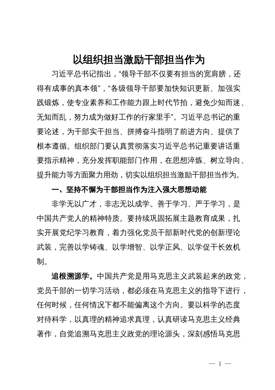 以组织担当激励干部担当作为习近平总书记指出,“领导干部不仅要有担当的宽肩膀,还得有成事的真本领”,“各级领导干部要加快知识更新、加...