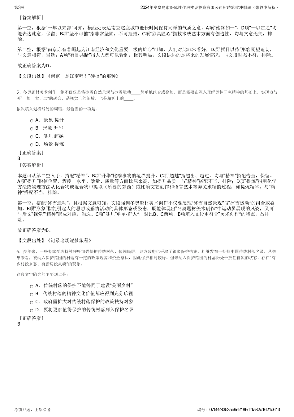 2024年秦皇岛市保障性住房建设投资有限公司招聘笔试冲刺题(带答案解析)【下载须知】:1,本套练习包含以下题型:言语理解与表达题、常识...