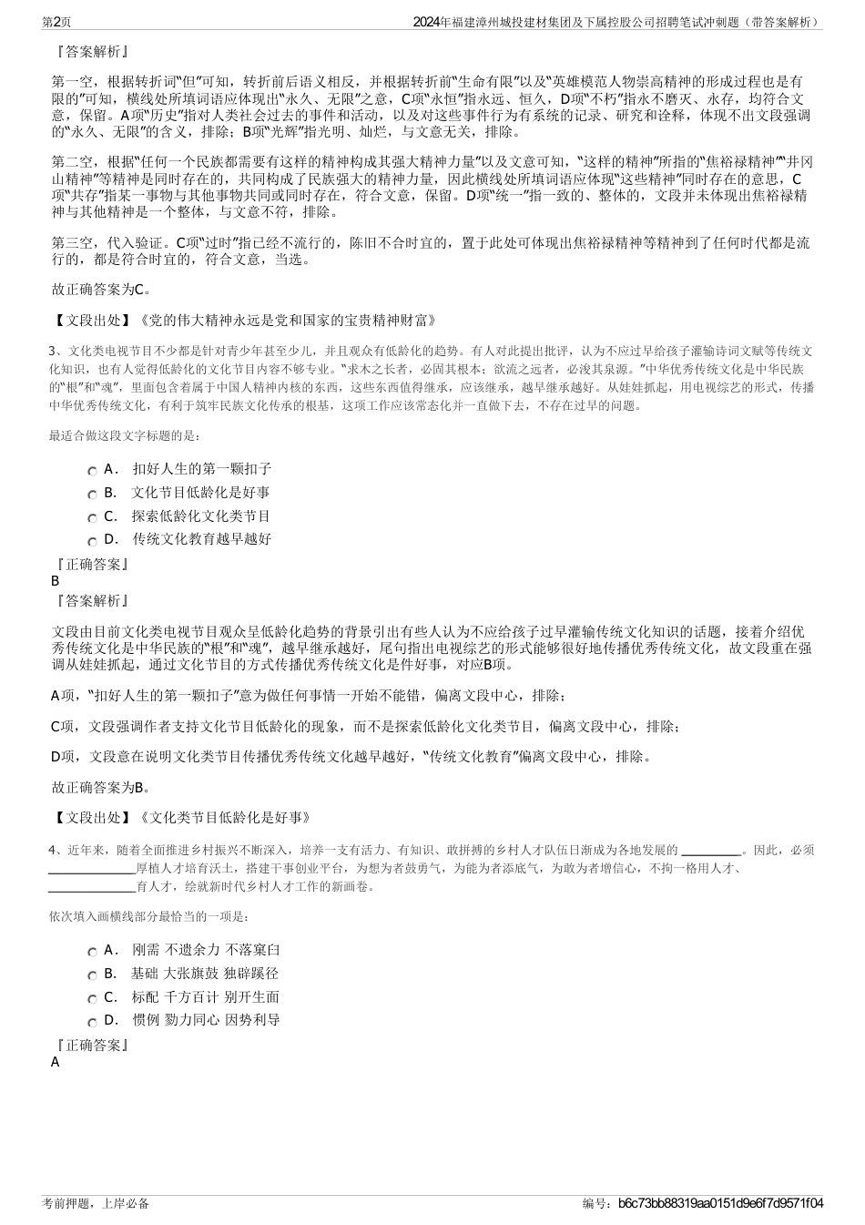 2024年福建漳州城投建材集团及下属控股公司招聘笔试冲刺题(带答案解析)_第2页