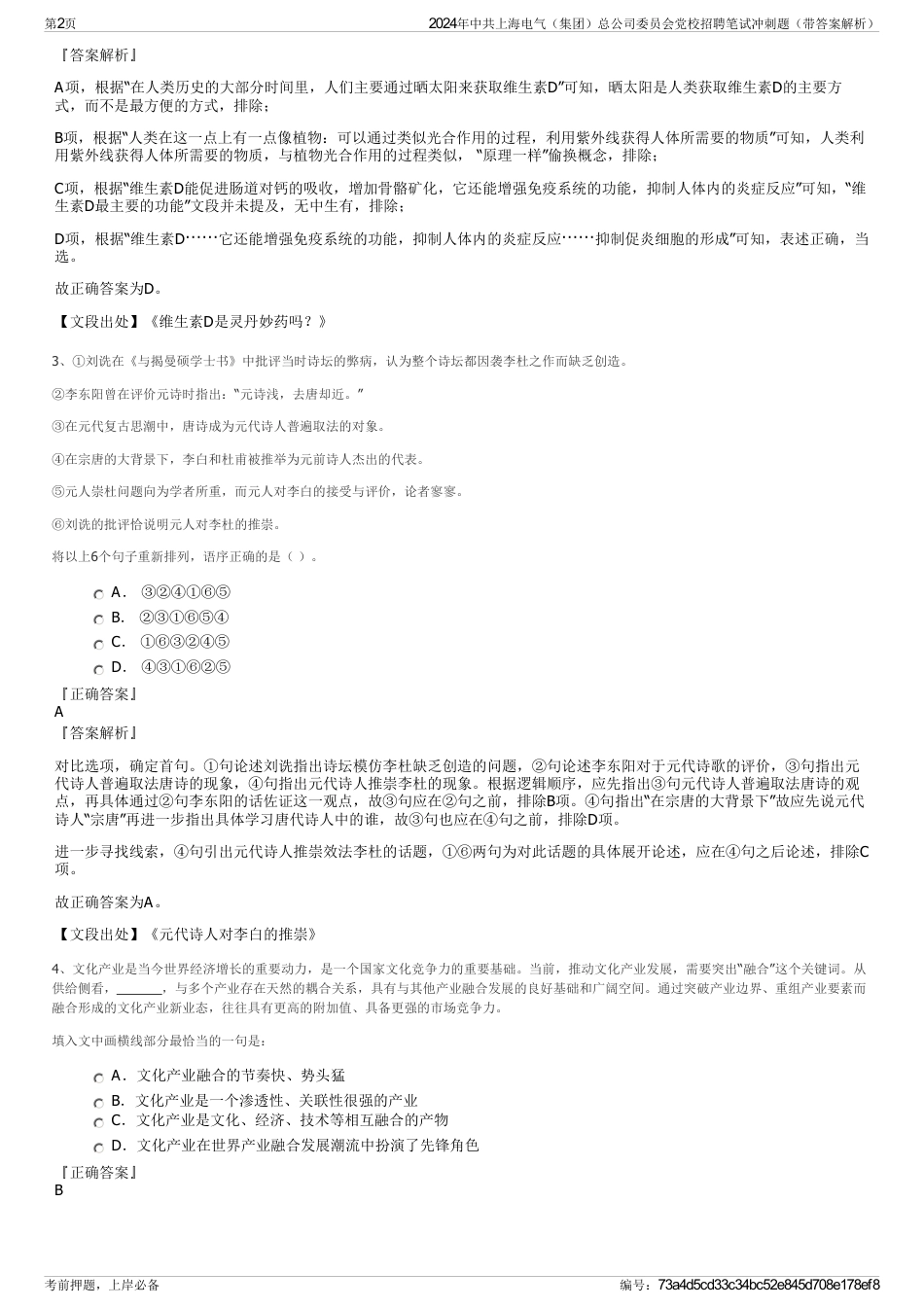 2024年中共上海电气(集团)总公司委员会党校招聘笔试冲刺题(带答案解析)_第2页