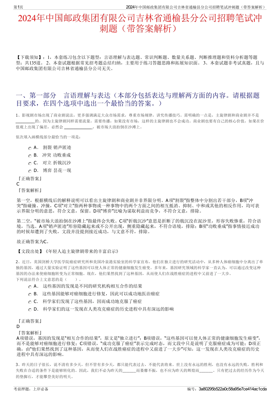 2024年中国邮政集团有限公司吉林省通榆县分公司招聘笔试冲刺题(带答案解析)【下载须知】:1,本套练习包含以下题型:言语理解与表达题、...