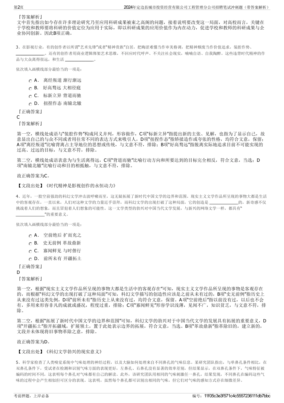 2024年定边县城市投资经营有限公司工程管理分公司招聘笔试冲刺题(带答案解析)【下载须知】:1,本套练习包含以下题型:言语理解与表达题...