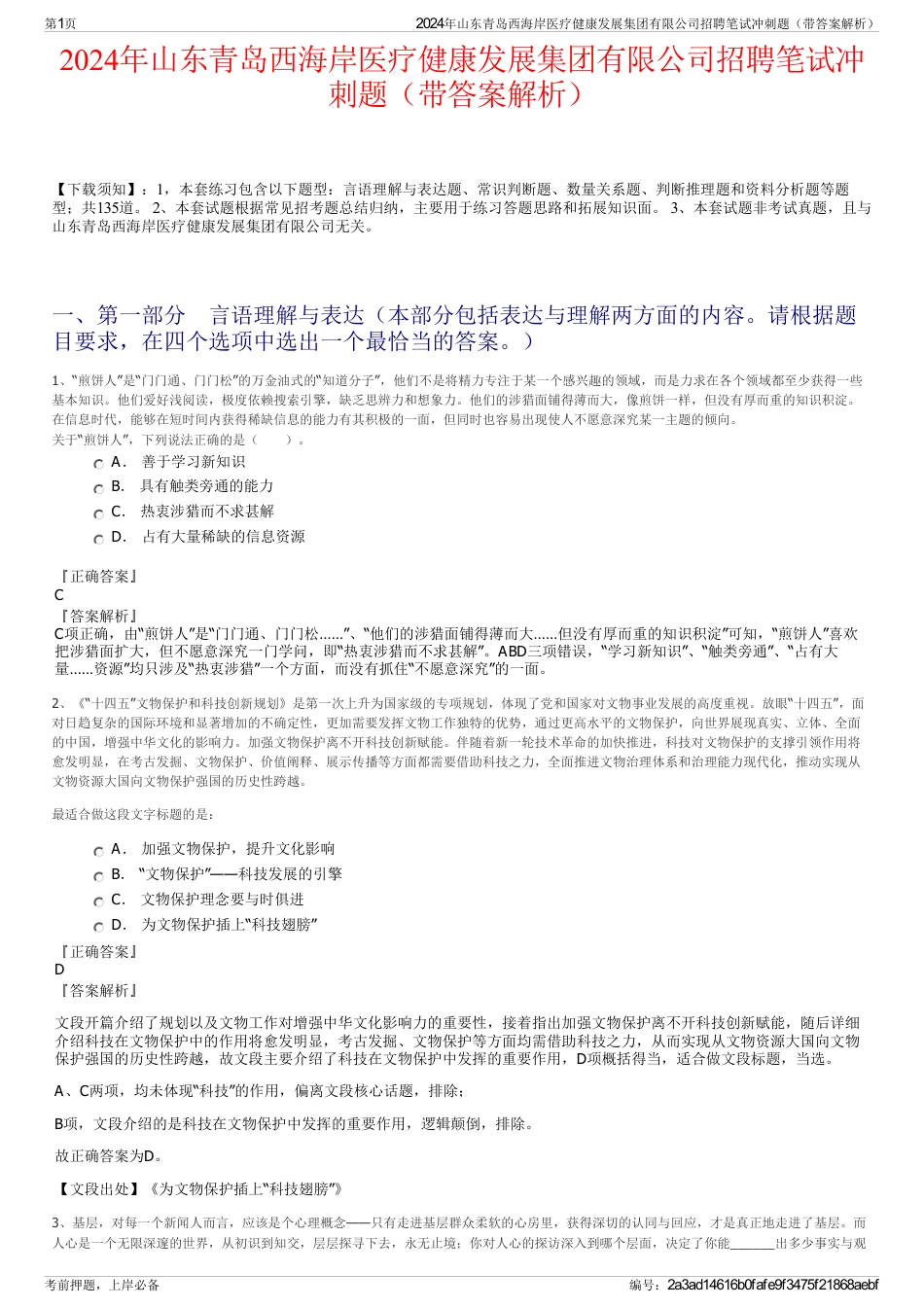 2024年山东青岛西海岸医疗健康发展集团有限公司招聘笔试冲刺题(带答案解析)【下载须知】:1,本套练习包含以下题型:言语理解与表达题、...